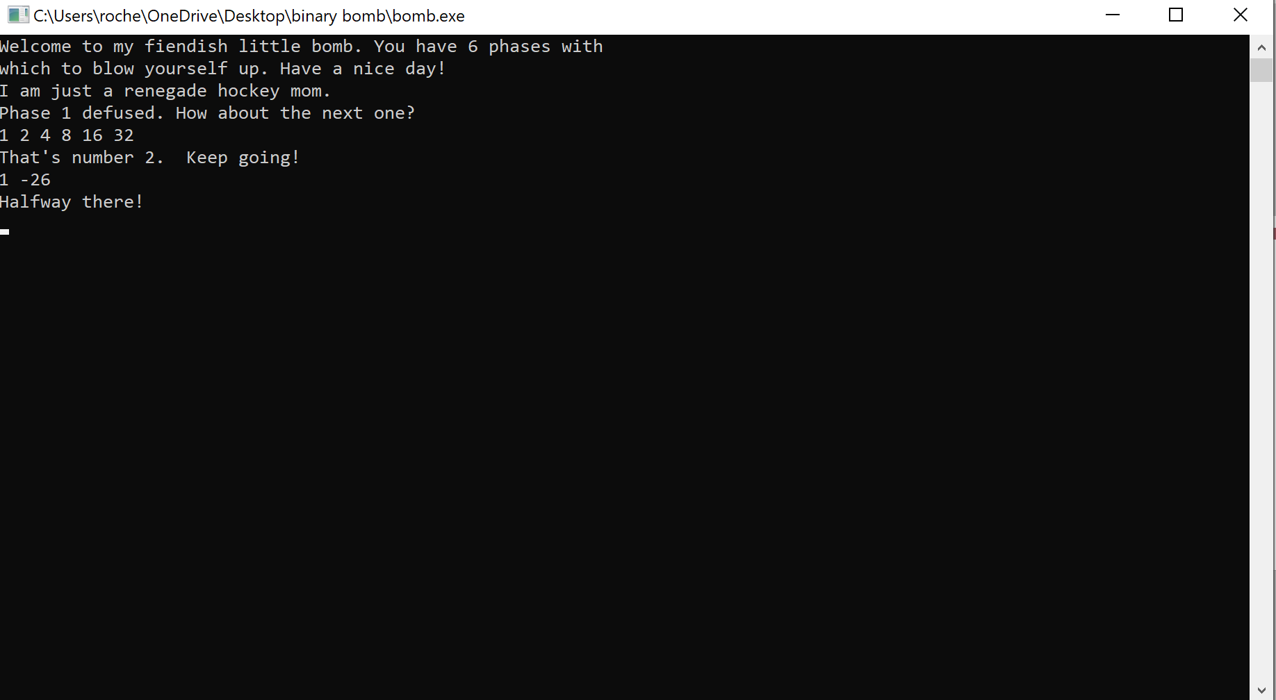 If we haven’t made a mistake along the way, it looks like our first number can be 0-5, and our second input must be ‘0xffffffe6’, which equates to -26 in it’s signed twos complement form.