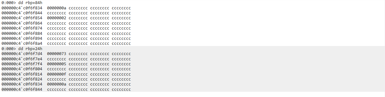 Dumping the memory, we find our initial input of ‘10’ at [rbp+84h]