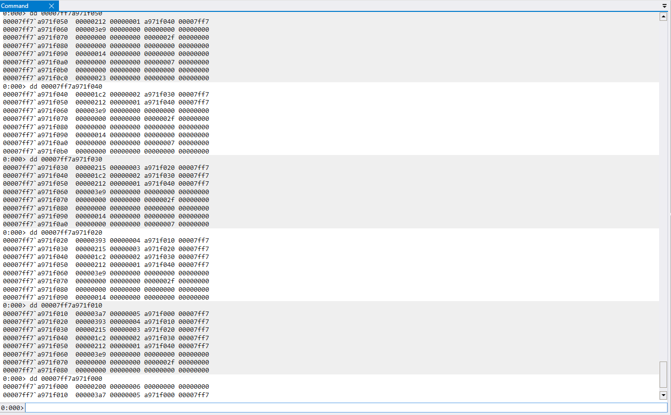 To understand the structure of these nodes, let’s use WinDbg to take a closer look at the memory