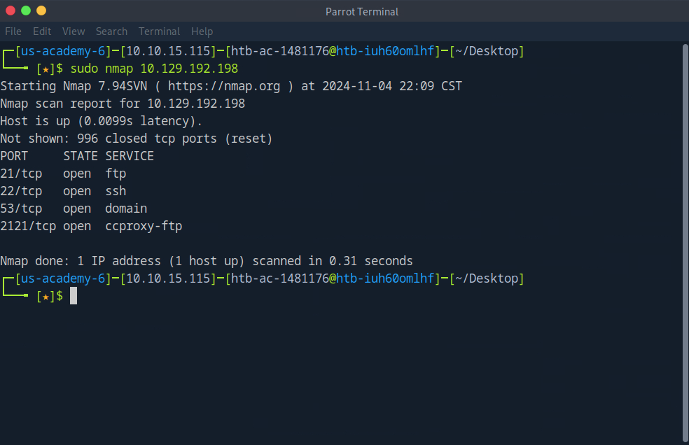 sudo nmap -sC -sV 10.129.192.198 -p 21,2121