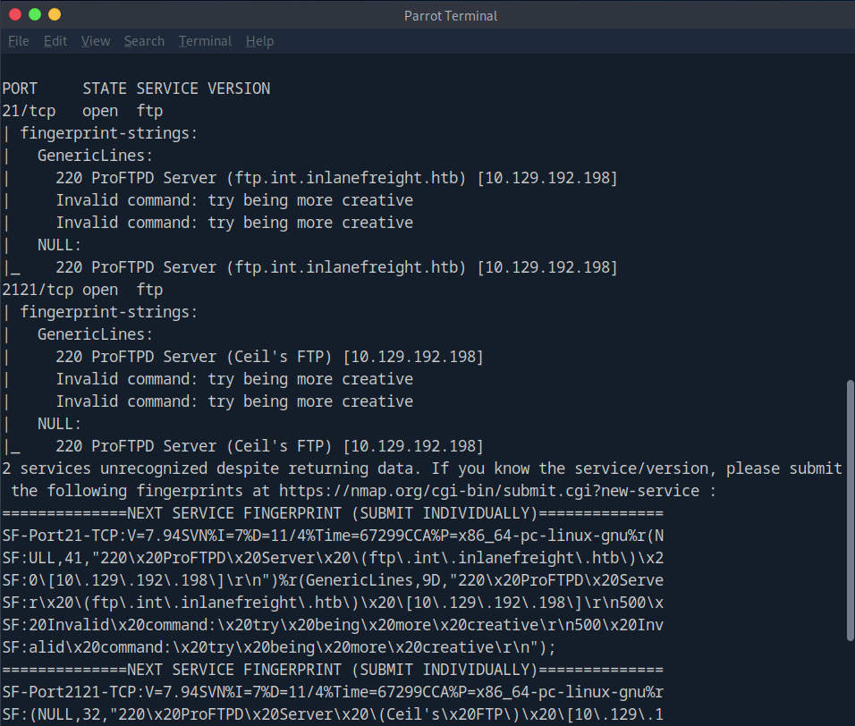 2121 is of particular interest since that is not a standard ftp port. We will scan both and see what we find.
