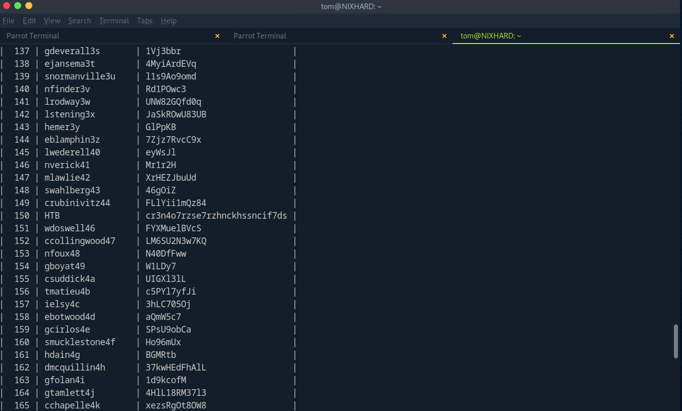 After logging into mysql with Tom’s credentials and a few queries, we are able to print the Users table and get our HTB Login!