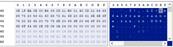 Answer 8: Using PEstudio, the DOS stub message field yields ‘N/A’. We can use PE-bear to take a closer look at it using the raw hex from the header. The message is ‘!This Salfram cannot be run in DOS mode.’